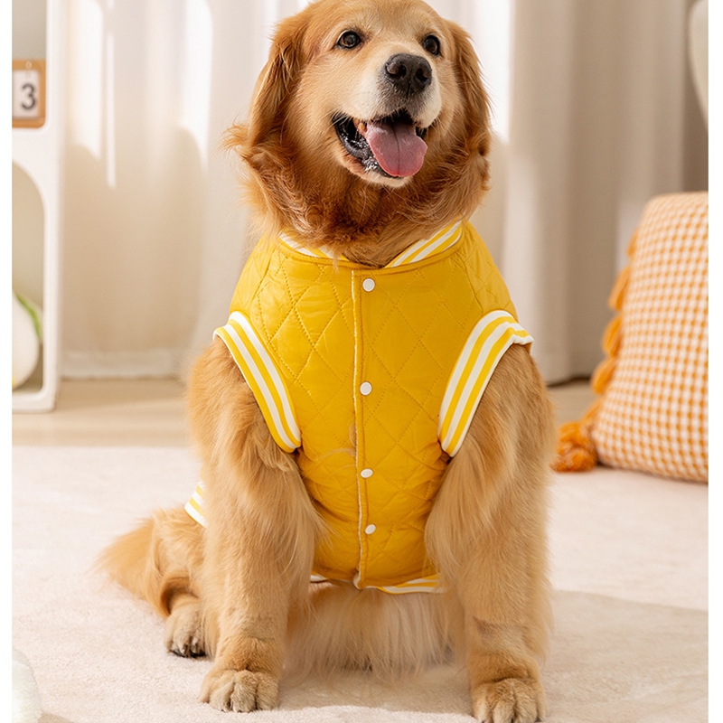 Keep your large dog cozy and stylish with this "Lucky Dog" Quilted Pet Vest! Designed for big breeds like Golden Retrievers, this brown quilted jacket features a playful "Lucky Dog" cartoon embroidery, the slogan "THE ONE AND ONLY," and an integrated leash ring. The quilted construction ensures warmth during cooler days, while the relaxed fit allows full mobility. Perfect for winter walks, indoor lounging, or casual outings, this vest combines functional warmth, fun design, and a tailored fit for large furry companions, making it a must-have for pet parents who want their big dogs to stay snug and fashion-forward.